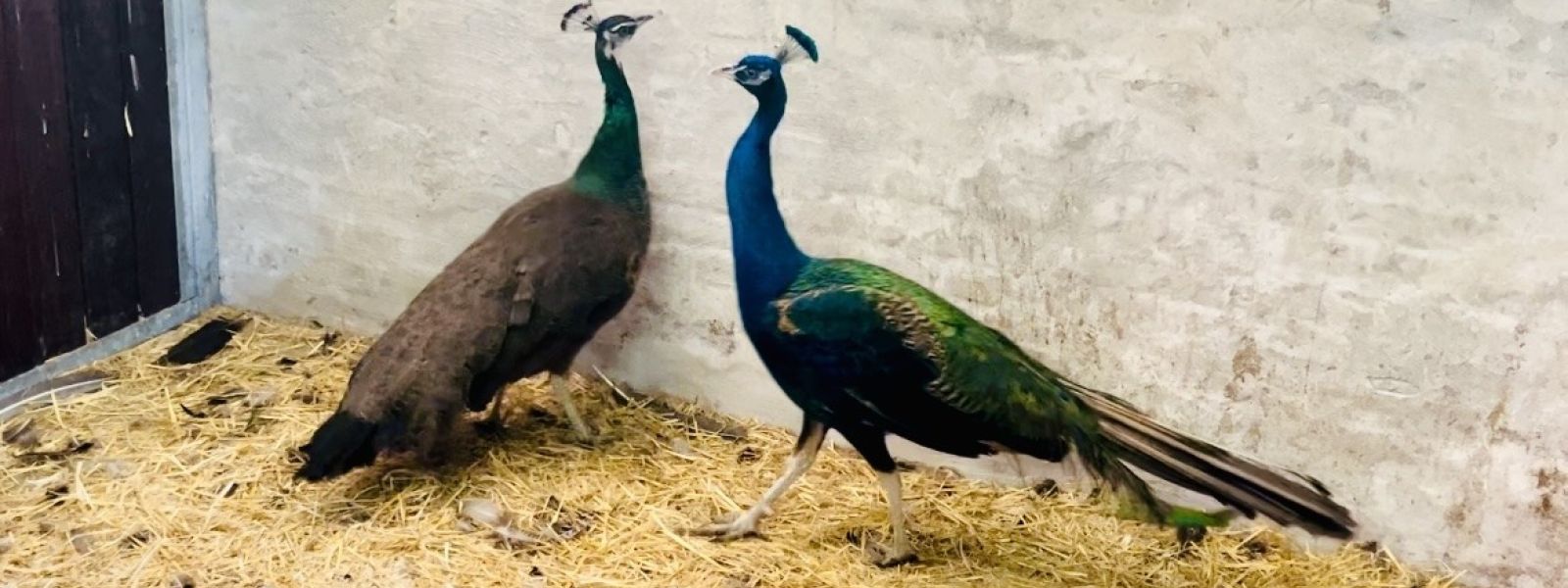 Vores smukke påfugle er blevet lukket ud og går nu frit rundt på vores 300.000 kvadratmeter store matrikel. Dette skaber en helt unik mulighed for vores besøgende til at opleve naturens vidundere på nært hold.